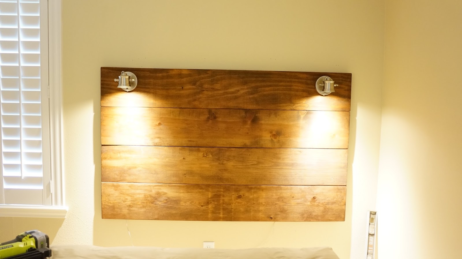 from DIY Wood Plank Lighted Headboard. Source Image: ourgildedabode.blogspot.com. Visit this site for details: ourgildedabode.blogspot.com