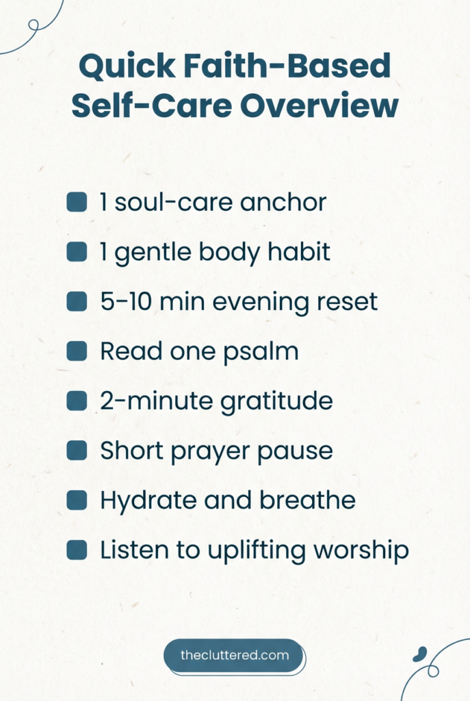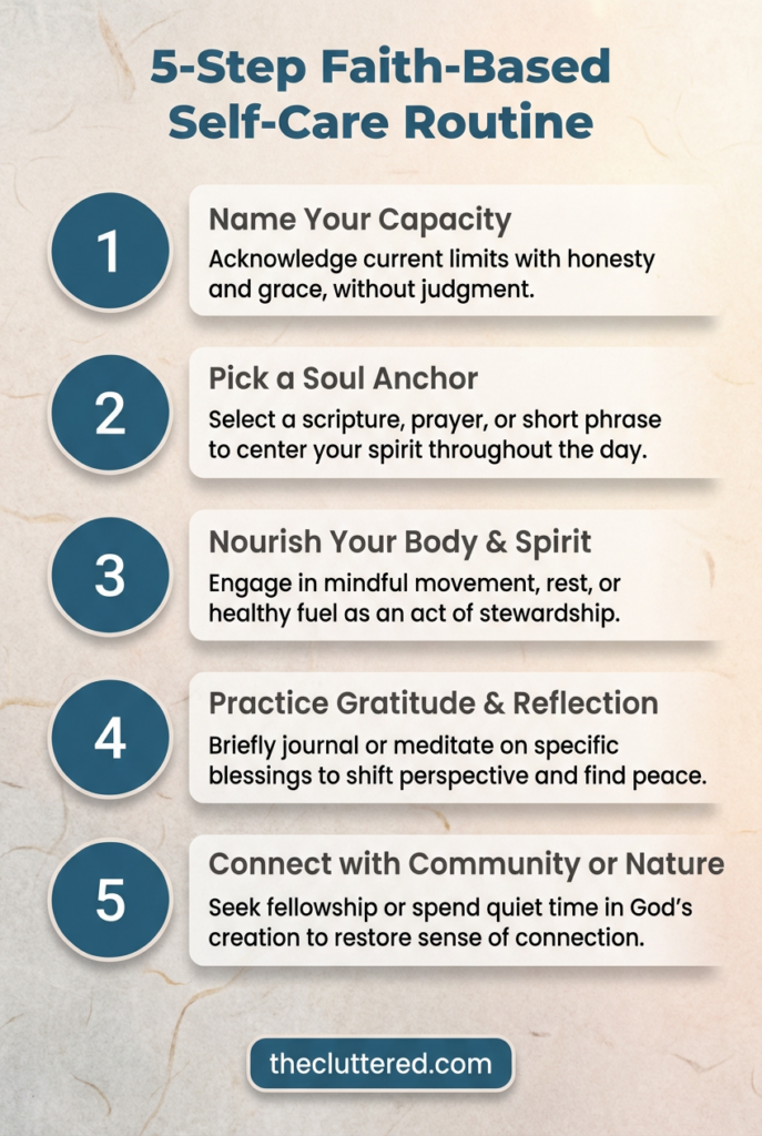 A good faith-based self-care routine for overwhelmed Christian women usually has a few simple pillars you can mix and match.