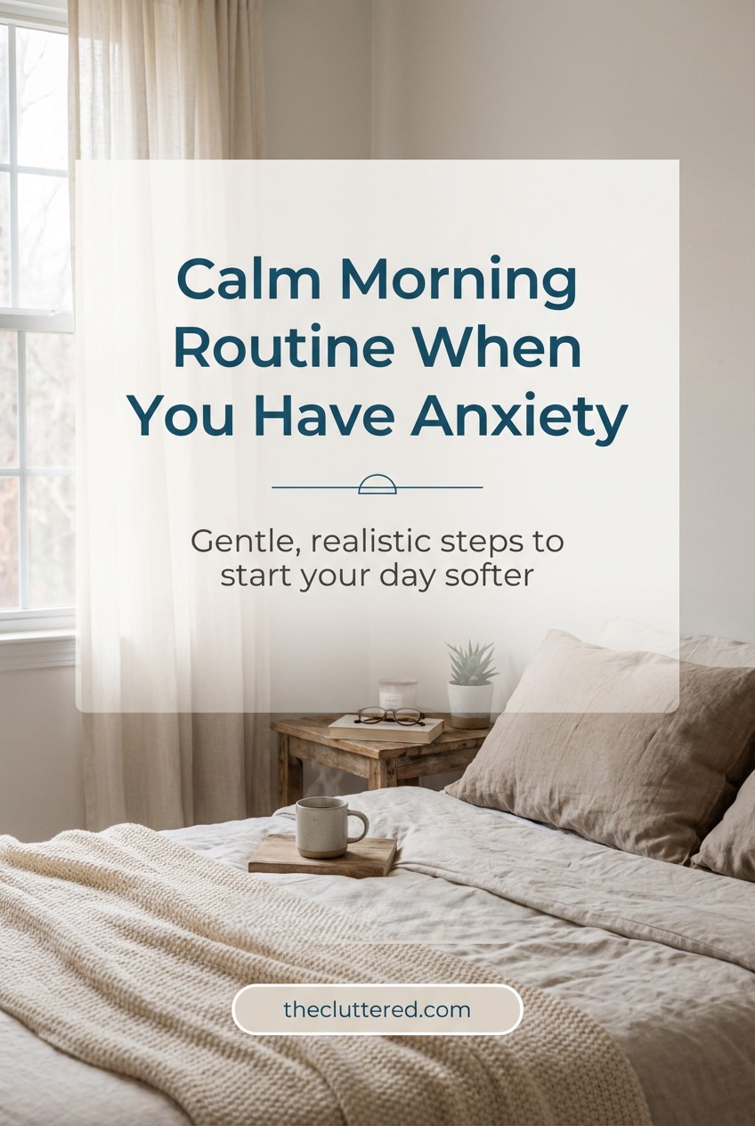 Waking up with anxiety can feel like your brain hits “panic” before you even open your eyes. Having a calm morning routine for anxiety isn’t about becoming a totally different person overnight—it’s about creating a softer landing for your mind and body. When you learn how to create a calm morning routine when you have anxiety, your mornings stop feeling like a battle and start feeling more like a gentle ramp into the day instead of a cliff. In this guide, you’ll get simple morning routine ideas, a cozy checklist, step‑by‑step actions, and anxiety friendly habits you can actually keep, even on low‑energy days. Save this guide to come back to later, and follow @theclutteredblog on Pinterest for more calm, cozy routine ideas.