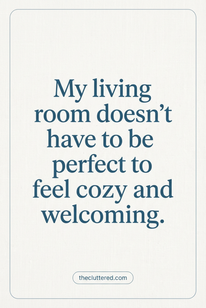 Decor only goes so far if your daily habits constantly fight the space. Think about how you want your living room to feel: maybe like a calm family living room where toys are visible but contained, or a soothing space for low‑energy evenings and quiet reading. Set up simple systems—like a basket for remotes, a tray for coffee table decor, and a bin for “take this to another room later”—so it’s easy to reset the room in 5 minutes. Use tiny rituals like lighting a lamp instead of the overhead light at night, or folding a throw blanket at the end of the day, to signal “living room reset” to your brain. A gentle affirmation you can borrow: “My living room doesn’t have to be perfect to feel cozy and welcoming.”