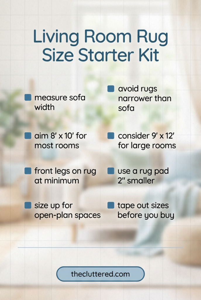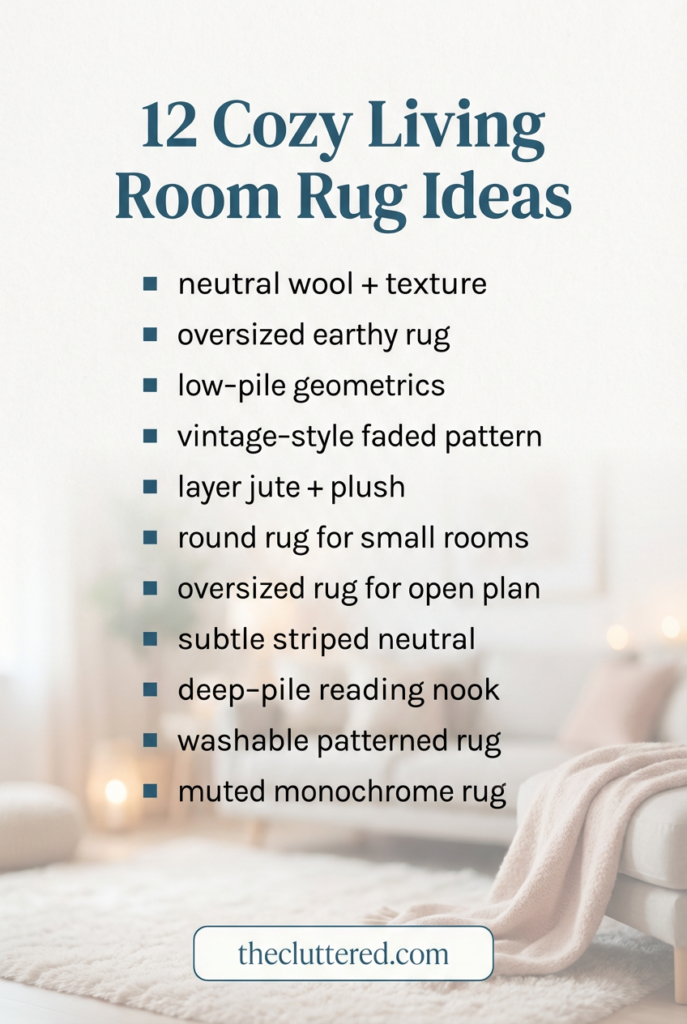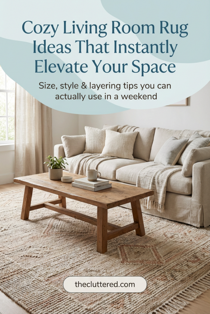 You don’t have to nail every living room rug idea in one weekend to have a home that feels good. Start with one decision—maybe sizing up your current rug, adding a textured neutral, or experimenting with layered rug ideas in the living room. Each small change adds up to a space that feels softer, calmer, and more “you” every time you walk in. Save this post for later, pin your favorite ideas, and follow @theclutteredblog on Pinterest for more cozy, clutter‑friendly living room inspiration.