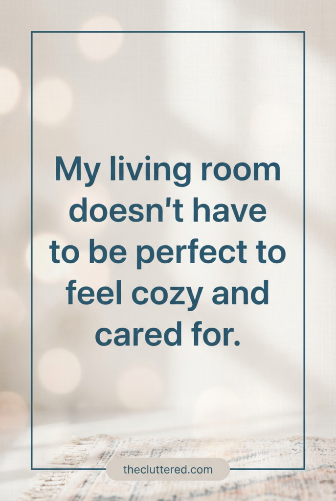 A living room rug only feels cozy if it’s not stressing you out with constant crumbs and stains. Instead of aiming for perfection, build small habits around your rug: a quick nightly crumb sweep, shoes‑off near the living room, and a light vacuum routine a couple of times a week. Choose rug materials and colors that match your real life—if you have kids, pets, or snacks on the sofa, a forgiving pattern or mid‑tone color will always feel calmer than a bright white rug. One simple mindset mantra to keep: “My living room doesn’t have to be perfect to feel cozy and cared for.” Let your rug support your everyday life, not become another source of pressure.