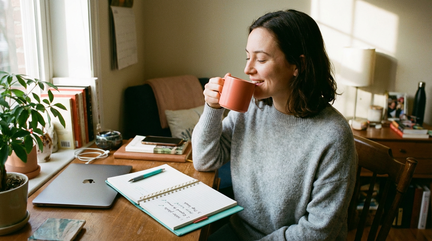 Instead of forcing yourself to “be productive,” you’re giving your brain a low-friction on-ramp back into action.