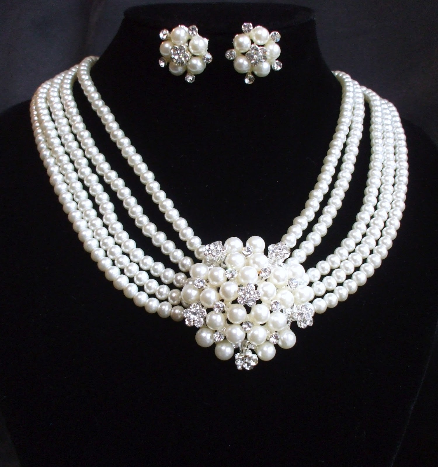 - 9. Pearl Necklace Sets 4 line grand pearl necklace set in
