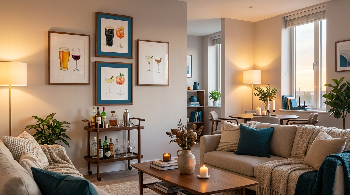 When you’re picking a personalised drink illustration, think about where it’s going to live first. Is this print going above a sleek bar cart, over your dining table, or in a cozy kitchen corner? For a modern, clean space, look for minimalist couple print designs with neutral backgrounds and simple linework — they tend to age really well and match almost any decor. If your home is more playful or eclectic, quirky couples wall art with bold cocktails, splashes of colour, or illustrated bottles can feel right at home.