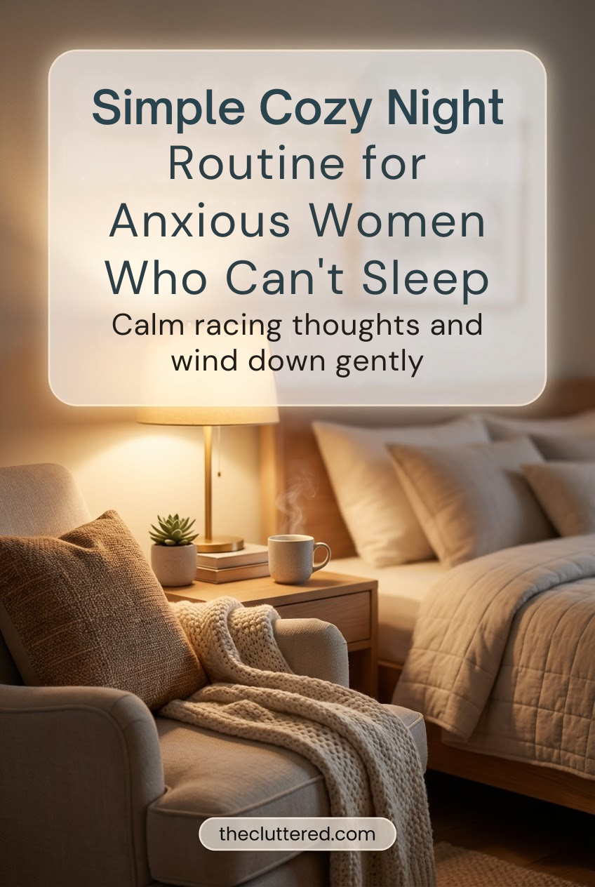 If your brain hits overdrive the moment your head hits the pillow, you’re not alone. Nighttime can be the hardest for anxious women who can’t sleep—your body is exhausted but your mind is suddenly replaying every conversation, worry, and to‑do. A simple cozy night routine for anxious women who can’t sleep is not about perfection or “that girl” aesthetics; it’s about giving your nervous system a soft landing so it finally feels safe enough to rest. In this guide, you’ll get an anxiety‑friendly evening routine, calming bedtime habits, a practical night routine checklist, and cozy self‑care ideas you can actually stick to. Save this guide to come back to on your hardest nights—and don’t forget to follow @theclutteredblog on Pinterest for more calm, cozy routines.