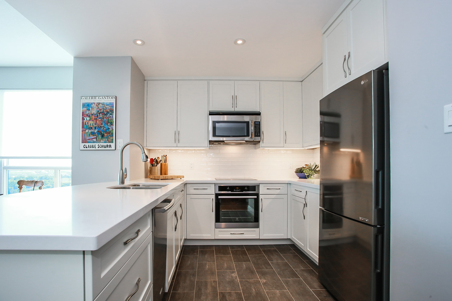 To open up a smaller sized space, take into consideration making use of intense colors in your kitchen. These white cabinets coupled with a light gray counter top not just makes the kitchen appearance larger, however also produces an organized, tidy look.
