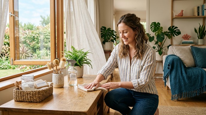 Start where you are. Maybe this spring you just swap out one chemical cleaner for a vinegar solution. Next time, you add reusable cloths. The following season, you tackle decluttering before cleaning. Small steps compound.