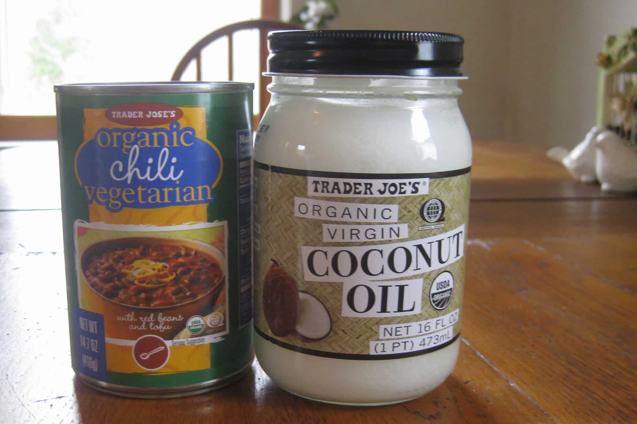 34. Trader Joe s organic ve arian chili and coconut oil